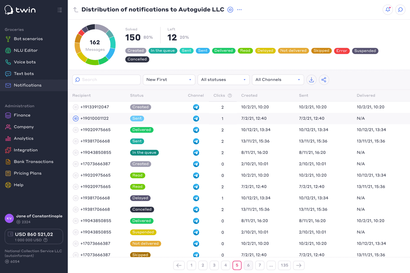 Бұл қызмет хабарландырулар, ұсыныстар және тіпті құжаттар сияқты кез келген хабарламаларды жіберуге мүмкіндік береді. Клиенттер пайдаланатын кез келген арнаны, мессенджерлерден, электрондық пошталардан веб-сайтыңыздағы чаттарға дейін пайдаланыңыз.